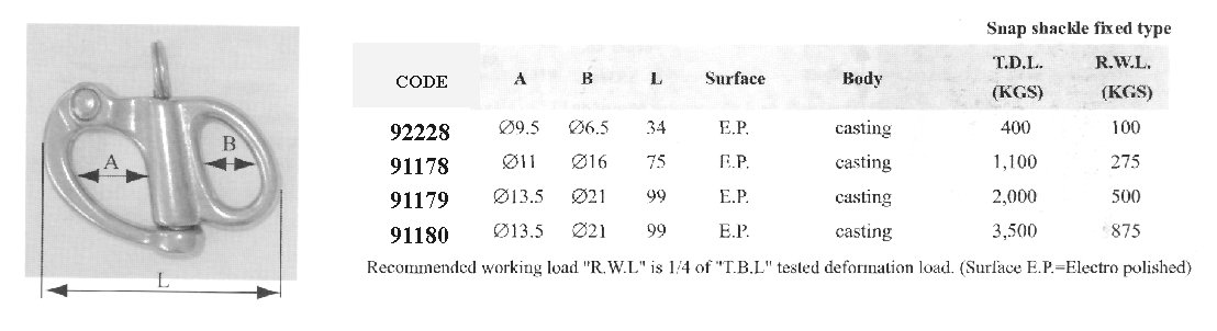 Fixed Snap Shackle, Inox 316, No 1
