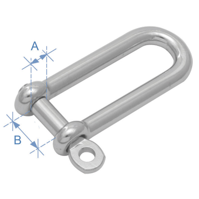 Long type D shackle, w/ locking pin, AISI 316, Diam. 10mm
