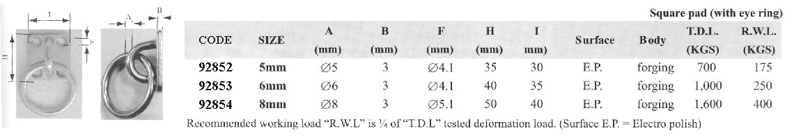 Square Pad, w/eye ring, Inox, ø5mm